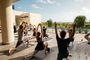 Tras la cena, el primer día de actividades comenzó con una sesión de yoga en Zentropia Palladium Spa & Wellness, presentada por VUORI, la marca oficial encargada de vestir a los asistentes. Esta práctica matutina, realizada en uno de los espacios más emblemáticos del resort, marcó el inicio de una agenda enfocada en bienestar, energía y conexión.