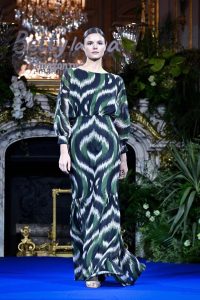 En realidad, eran piezas de la colección del diseñador colombiano (real) Andrés Otálora. Oriundo de Cali, este creador juega con telas vaporosas, estampados en tonos rojizos y verdes, y vestidos de cintura marcada y escotes pronunciados.