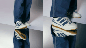 Las Forum 2000 x BZRP se distinguen por su materialidad de cuero en tono Cream White, con las tres icónicas tiras en textura denim, marcando el regreso de este textil como ícono de moda. Su particular lengüeta incorpora un cierre dorado, junto al logo del Trifolio en el pie izquierdo y el nombre “BZRP” en el derecho, reforzando la dualidad entre el legado de adidas y la personalidad del productor.