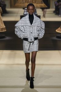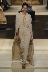 Y en el último magnífico conjunto Dior, cortesía de la artista india Shakuntala Kulkarni, que ha creado ocho imponentes estatuas de bambú, caña y rafia, que sugieren princesas, samuráis y amazonas empoderadas. Se presentan en un círculo de 20 metros de diámetro. En las paredes, enormes pinturas de míticas mujeres guerreras del Rajastán, sugiriendo «una feminidad versátil, reactivando ese momento clave de libertad creativa del que Miss Dior es el emblema», argumentaba Chiuri en sus notas del programa.