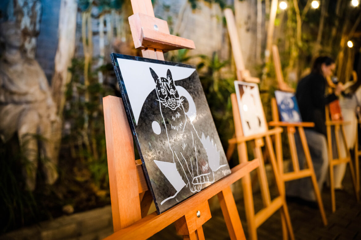 Los fondos recaudados en la subasta —con precios accesibles para fomentar la adquisición de arte entre jóvenes de 20 a 40 años— fueron destinados a la ONG Adopta Project, dedicada a rescatar y cuidar perritos en situación extrema.