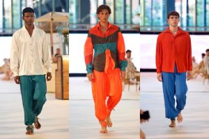 La sastrería sigue siendo una protagonista eterna en la pasarela madrileña, y se materializó en esta propuesta con trajes de dos piezas holgados, además se incluyeron shorts, faldas, kimonos de inspiración urbana y vestidos oversize.