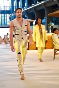 «Esta colección representa un arduo trabajo artesanal, donde cada prenda es una meticulosa combinación de diversos tejidos, incluyendo tapicerías y hasta edredones. Hemos abordado la sastrería de manera delicada, con un entusiasmo y dedicación incansables», explica Ramiro.