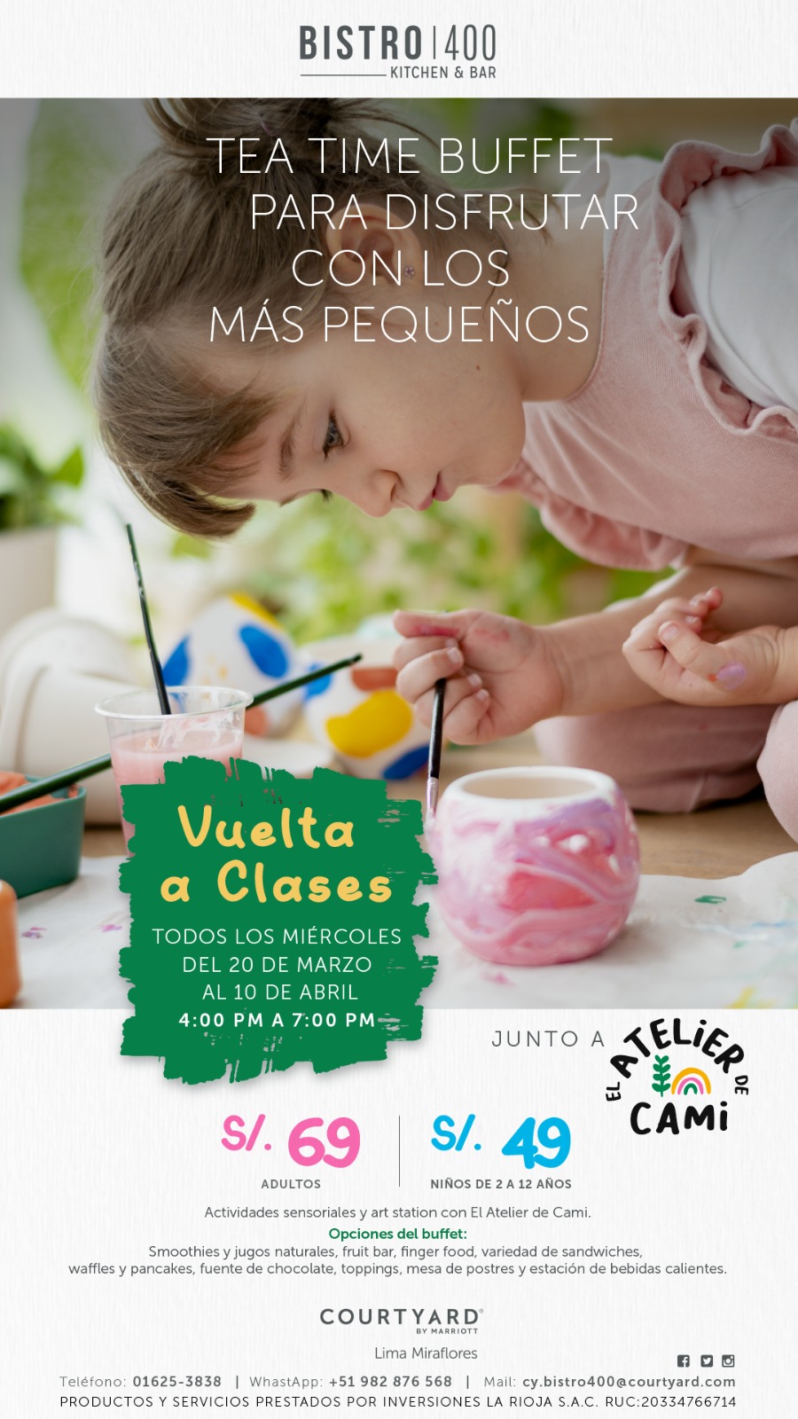 Este evento promete ser una experiencia inolvidable para toda la familia, donde la buena comida se combina con la diversión para crear momentos memorables. Para más información y reservas al teléfono 01 6253838 o WhatsApp al +51 982876568 o cy.bistro400@courtyard.com.