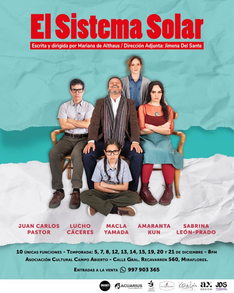 La obra teatral “El sistema solar”, escrita por Mariana de Althaus y dirigida por Jimena Del Sante, vuelve a los escenarios limeños con una temporada especial en diciembre. Considerada una de las piezas más potentes y queridas del teatro peruano contemporáneo, la obra retoma su mirada incisiva sobre las dinámicas, tensiones y afectos que orbitan dentro de una familia en plena noche navideña.