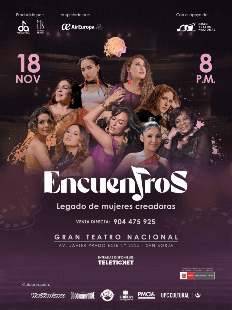 Más que un concierto, ENCUENTROS es una celebración del arte femenino en todas sus expresiones. Una invitación a escuchar, mirar y sentir la historia viva de las mujeres que marcaron la identidad musical del Perú, reafirmando el poder del arte como un puente entre generaciones y como una fuerza que sigue transformando nuestra cultura. La cita es el martes 18 de noviembre, a las 8:00 p.m., en el Gran Teatro Nacional. Las entradas están disponibles en Teleticket.