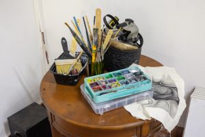 Dentro de sus espacios, se encuentra ‘Negocios / Umbrales‘, la primera exposición individual de Miguel Ángel Polick en la galería. El artista limeño presenta una intrigante mezcla de pinturas, dibujos y objetos en una exploración profunda del entretenimiento, la memoria y la llegada del nuevo milenio, fusionando la animación japonesa con el ambiente limeño. Polick lleva estas estrategias pictóricas a un espacio social marcado por cierto abandono, centrándose en los negocios de barrio para examinar qué nos dicen sus puertas cerradas, sus espacios de anuncios y sus pegatinas. La técnica empleada, el fotorrealismo, se concentra en el brillo de las cosas simples, celebrando la apariencia más externa de objetos cotidianos.