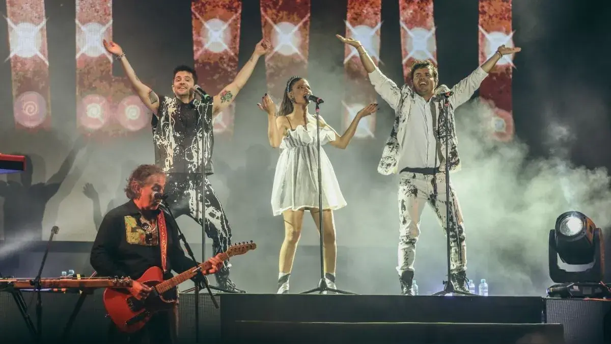 La celebración siguió con un recorrido por temas como Memoria, Solo sé, Vamos al ruedo y Dame, un cover de Los Abuelos de la Nada. El mar de gente coreaba cada palabra, mientras en las pantallas aparecían imágenes del pasado. “Pareciera que no pasó el tiempo”, había dicho Felipe. Y Benjamín agregó: “Este recuerdo no lo vamos a olvidar nunca”.