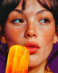 Después, coloca al centro la paleta Flamin’ Hot® x Holanda, como si fuera una brocheta clavada en la fruta. A medida que se derrite, su sabor swicy —esa mezcla de dulce y picante— se fusiona con los jugos naturales de la fruta, creando una especie de chamoy natural que se intensifica con cada bocado.