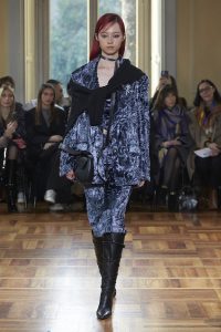 Además, Rambaldi ha contado con UGG para presentar una serie de botas personalizadas imaginarias, completamente disruptivas, que se intercalaban con la colección creada junto a Cuoio di Toscana con el objetivo de simbolizar los valores de sostenibilidad.