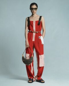 Por lo demás, los motivos Damier y Monogram se reinterpretan en clave lúdica y están presentes desde en las chaquetas gráficas de corte camisero y los impermeables reversibles para hombre hasta en los pantalones cortos vaqueros y las americanas para mujer. Para la noche, los vestidos de corte columna de un solo tirante y sostenidos por tiras de cuero para ellas se acompañan de blazers para los hombres, rematados con botones con las letras LV de acabado dorado.