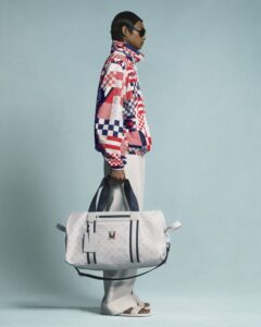 La primera incluye cortavientos y pantalones cortos con patrón técnico, bolsas de gran tamaño confeccionadas en lona impermeable y un pañuelo marinero repelente al agua con el monograma, en el caso de las propuestas para mujer. Todo, anclado por la zapatilla LV Rush creada por el director creativo de Vuitton, Nicolas Ghesquière, para la colección Crucero 2024. Para los chicos, las nuevas zapatillas Barracuda se presentan en blanco con el logotipo de la V en rojo y negro.
