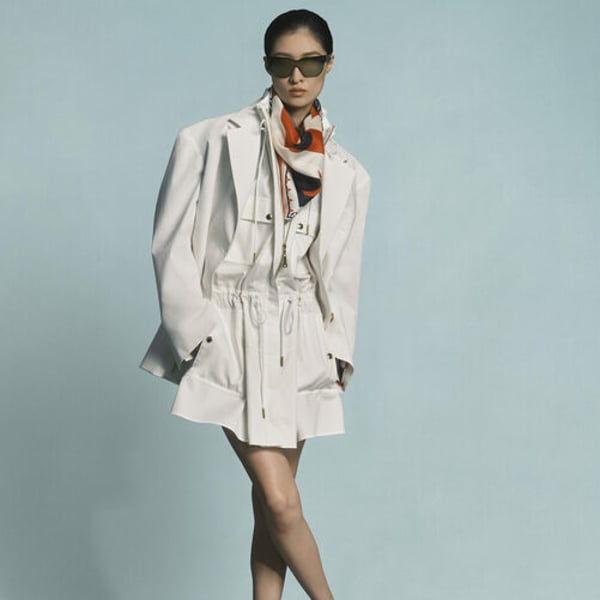 Por lo demás, los motivos Damier y Monogram se reinterpretan en clave lúdica y están presentes desde en las chaquetas gráficas de corte camisero y los impermeables reversibles para hombre hasta en los pantalones cortos vaqueros y las americanas para mujer. Para la noche, los vestidos de corte columna de un solo tirante y sostenidos por tiras de cuero para ellas se acompañan de blazers para los hombres, rematados con botones con las letras LV de acabado dorado.
