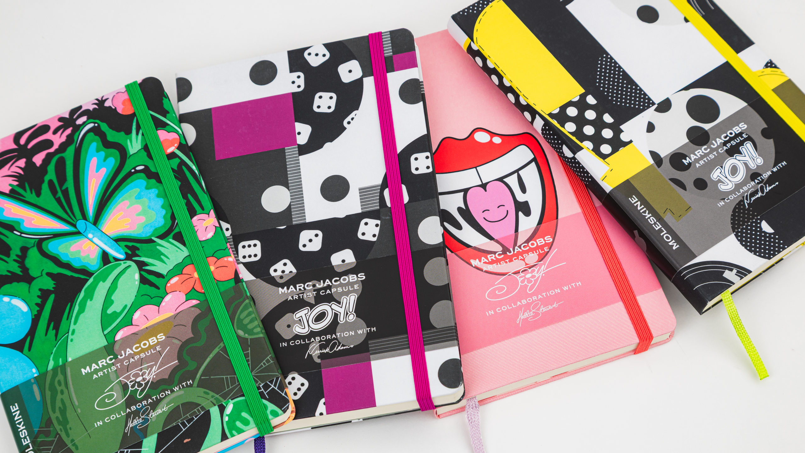 Moleskine y Marc Jacobs celebran el arte de la autoexpresión con una nueva colaboración lúdica que lleva la audaz campaña JOY de Marc Jacobs al legendario cuaderno Moleskine. Como parte de la celebración de temporada de la creatividad, la cultura y el optimismo sin complejos de Marc Jacobs, la colaboración presenta una colección de cuadernos e tapa dura de edición limitada, cada uno diseñado con portadas vibrantes, cierres elásticos a juego y cintas coloridas inspiradas en la estética JOY de Marc Jacobs.