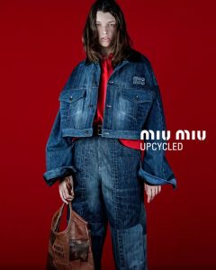 Integrada por una amplia variedad de piezas de indumentaria y de complementos, esta última y cuarta colección de la línea “Miu Miu Upcycled” llega así pues protagonizada sin duda alguna por el tejido “denim”, escogido aquí como materia primera preferente que sirve de base para la confección de esta nueva propuesta de marcado carácter urbano y “casual”. Una elección que lejos de resultar gratuita, permite justamente revalorizar las prendas vintage ya fabricadas en este tejido vaquero, histórica y tradicionalmente una de las fibras que mayores efectos perjudiciales han venido ejerciendo sobre el medio natural, tanto a causa de sus tintes como de su proceso de fabricación dependiente del uso de una ingente cantidad de agua. Dos problemáticas que se han logrado empezar a solventar gracias a los nuevos procesos de innovación textil desarrollados para la fabricación y el tratamiento de nuevas fibras y prendas vaqueras de nueva generación, en lo que no resta para obviar los duros efectos ya ejercidos en el pasado por el conjunto de la industria sobre el medio natural, con la intención de producir prendas en este tejido vaquero que ha terminado haciéndose un hueco preferente en el fondo de armario de todos y cada uno de los consumidores. Una huella ambiental que sí logran venir a compensar las prácticas de revalorización, como la que ahora se han decidido a implementar desde Miu Miu, escogiendo prendas de segunda mano y vintaje como materia prima de base para el desarrollo de esta cuarta colección de su línea “Upcycled”.