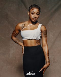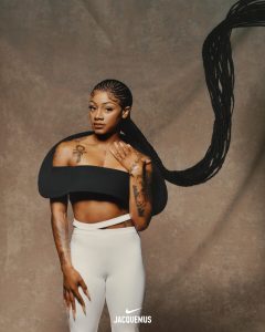 Para su campaña Primavera 2024, Nike y Jacquemus han contado con la campeona del mundo de atletismo, aspirante olímpica, atleta de Nike y una de las mujeres con más estilo y más rápidas del mundo, Sha’Carri Richardson. No solo encarna la colección y sirve de musa para la campaña, sino que también representa las dimensiones y la profundidad de una atleta que se enfrenta constantemente a su competencia más feroz y constante: uno mismo.