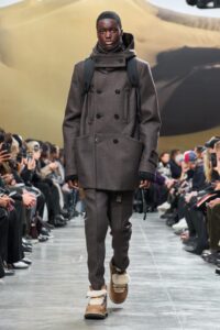 Al igual que en colecciones anteriores, la magia de Sacai radica en su habilidad para desafiar las expectativas sin perder la esencia de la moda utilitaria. Un desfile que no solo impresiona por su propuesta estética, sino también por su capacidad para redibujar el concepto de lo «formal» en la moda masculina.